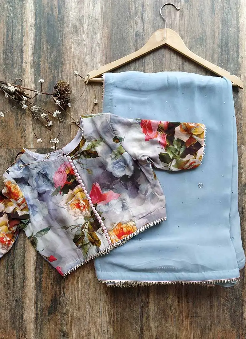 | Product Name | Attractive Blue Embroidered Party Wear Saree For Women |